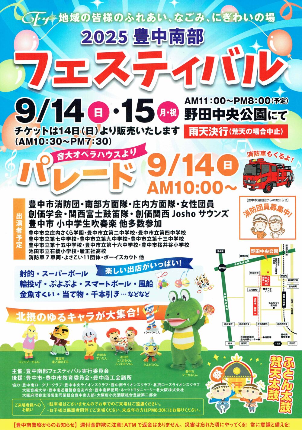 豊中南部フェスティバル2025実行委員会から案内をいただきました。